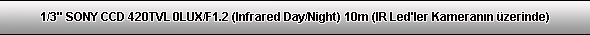 1/3" SONY CCD 420TVL 0LUX/F1.2 (Infrared Day/Night) 10m (IR Led'ler Kameranin üzerinde) Özellikleri |