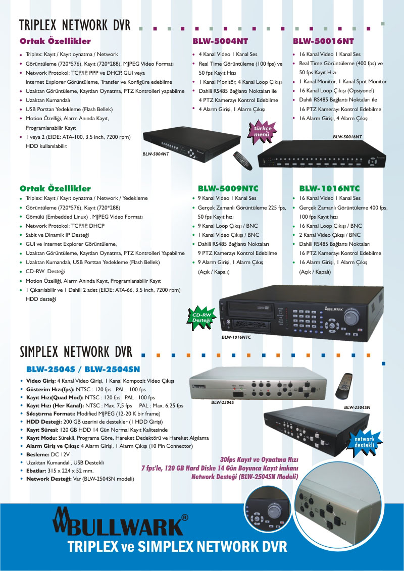 Bullwark RealTime 480Fps Görüntüleme, 50Fps Kayit Triplex - Network DVR