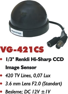 • 1/3" Renkli Hi-Sharp CCD Image Sensor 420 TV Lines, 0,07 Lux